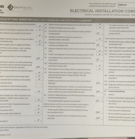 We provide an electrical installation condition report (EICR) and certificate as part of the inspection.